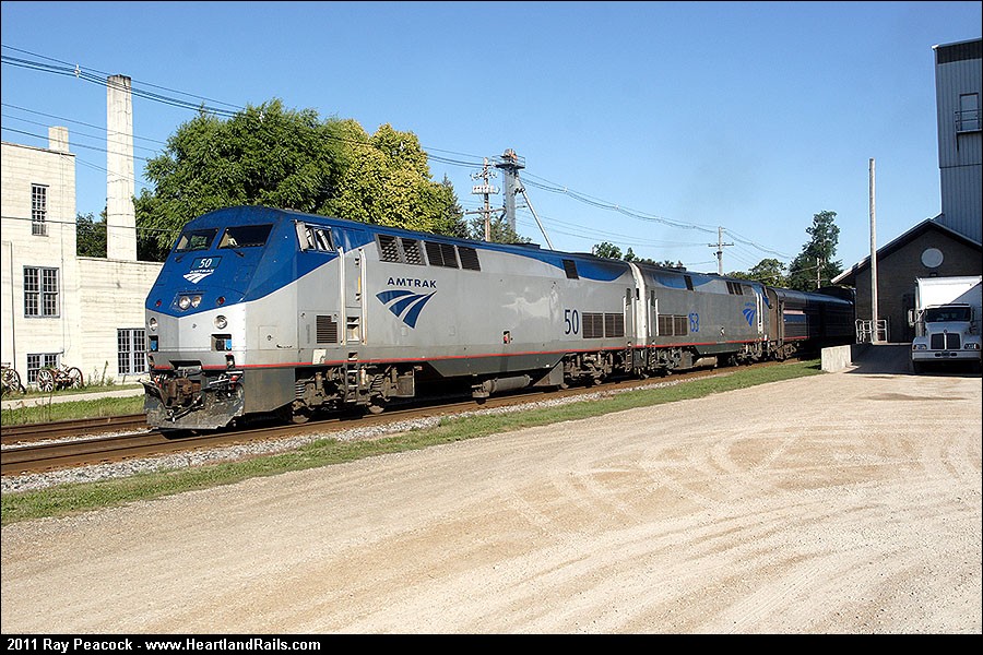 | Columbus, WI more... | 9/6/2011 | AMTK 50 | GE P42DC more... | ||