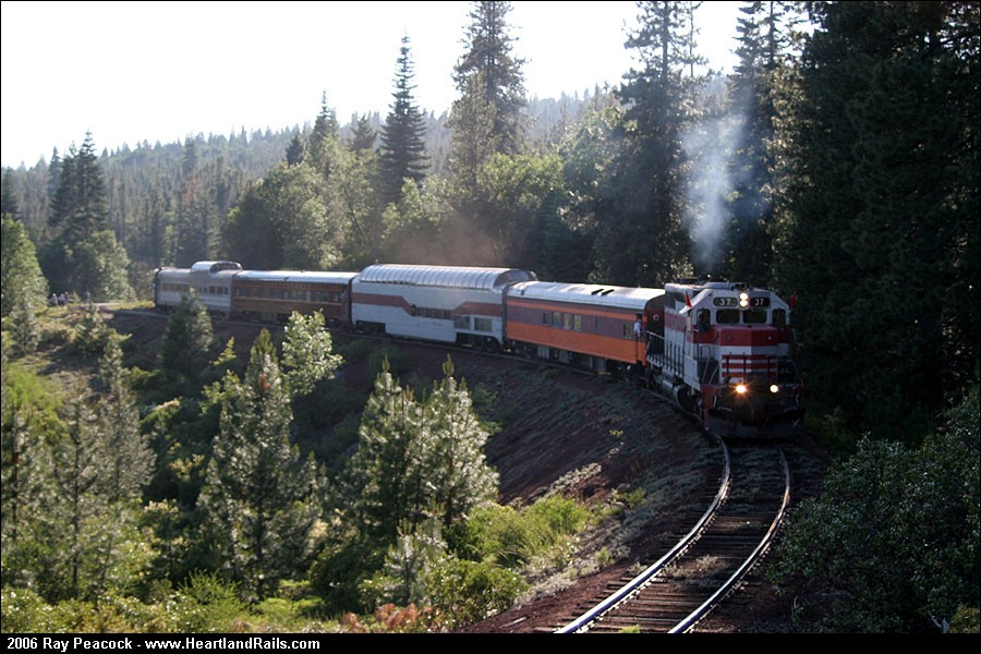 Here comes the second section of the Trains Unlimited charter pulled by McCloud #37, flying red flags, up the steep grade to the switchback. | |||||