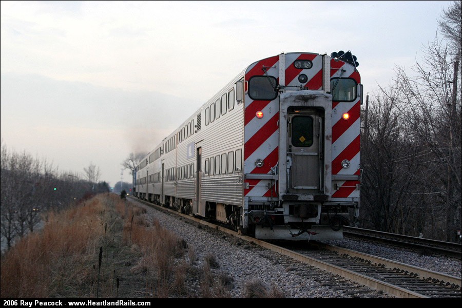 Metra engine 155 takes its train north out of Central St. Next stop is Wilmette.