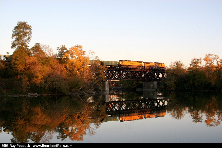 The second sunset crossing of the Rock River in Janesville by the WSOR crews taking this UP rock train to the UP yard on the south end of town. | |||||
