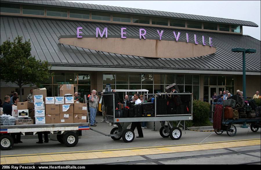0630 Hours at the Amtrak depot at Emeryville, CA. and the baggage carts full to stock the Trains Unlimited Charter.