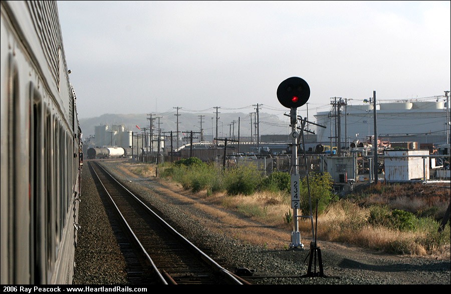 Heading up the Cal "P" past the industrial landscape at Richmond.