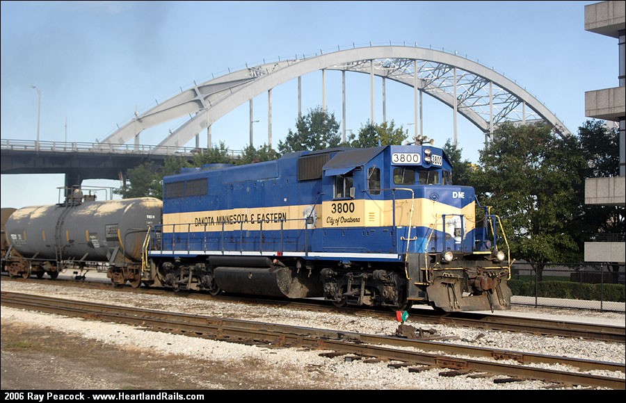 The IC&E local passes the steam in the yard at Rock Island with DM&E power.