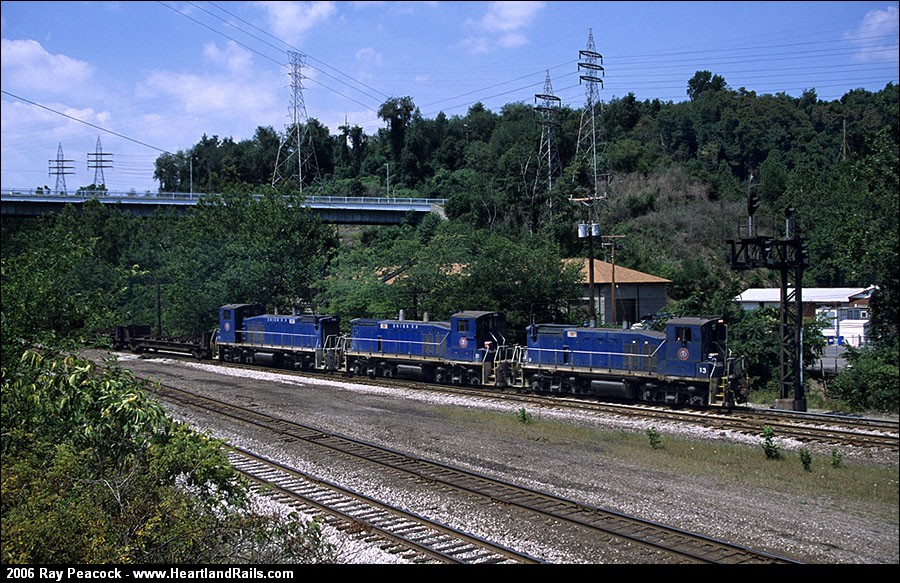 Union RR northbound passes the south end of the yard at Duquesne.