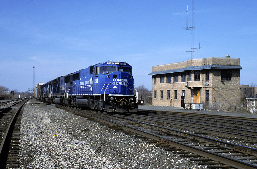 Conrail BREL train moves from track 2 to track 1 at CP Bend. The tower was still manned at this time.