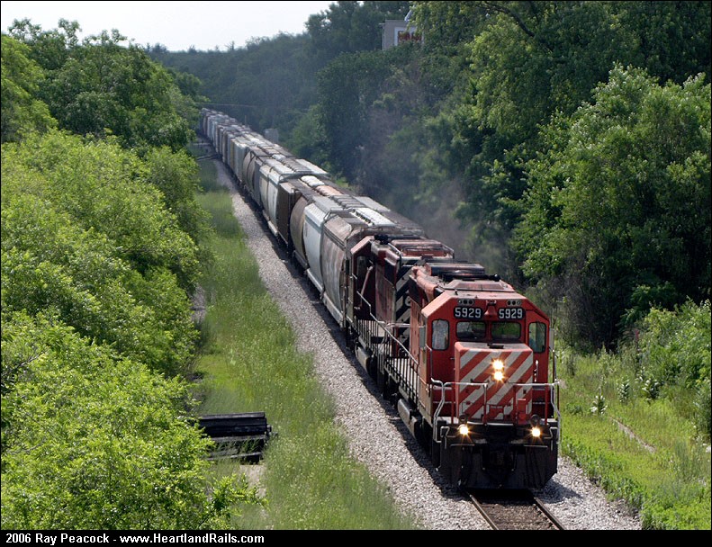 This used to be double track MILW Rd., SOO single tracked it in the late 80's. This is a westbound train.