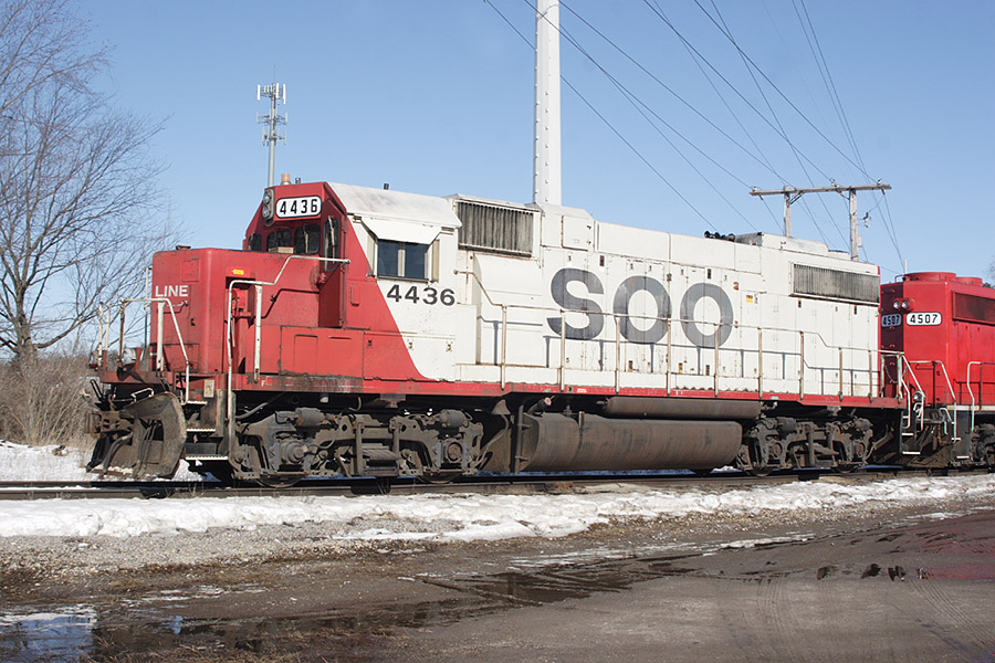 SOO power lays over at Portage on the weekend, waiting for the start of another work week.
