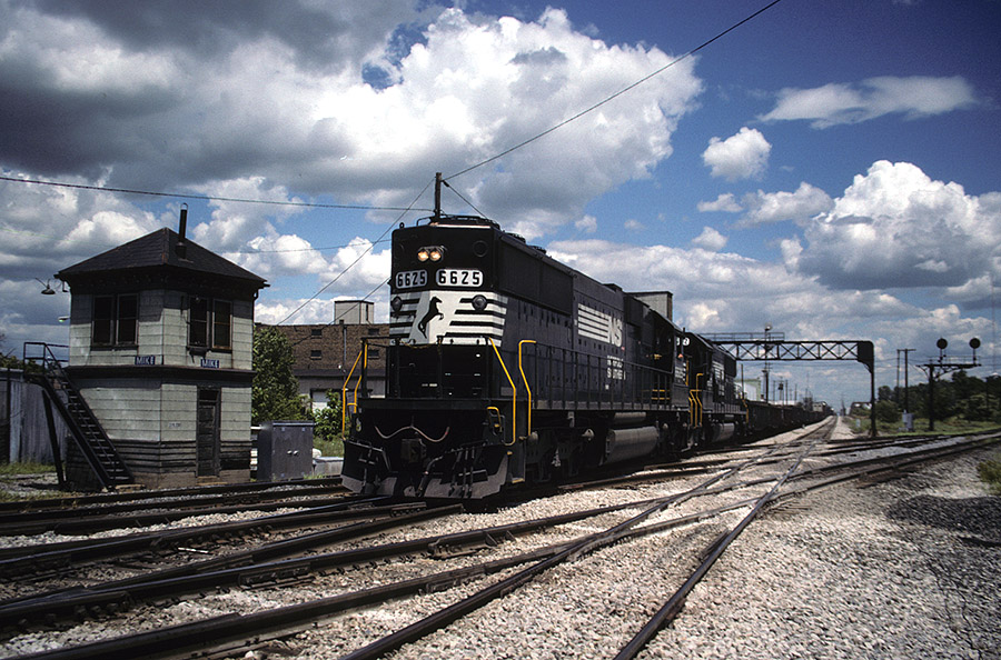 NS westbound on the old Wabash crosses the ex-PRR at Mike Tower.