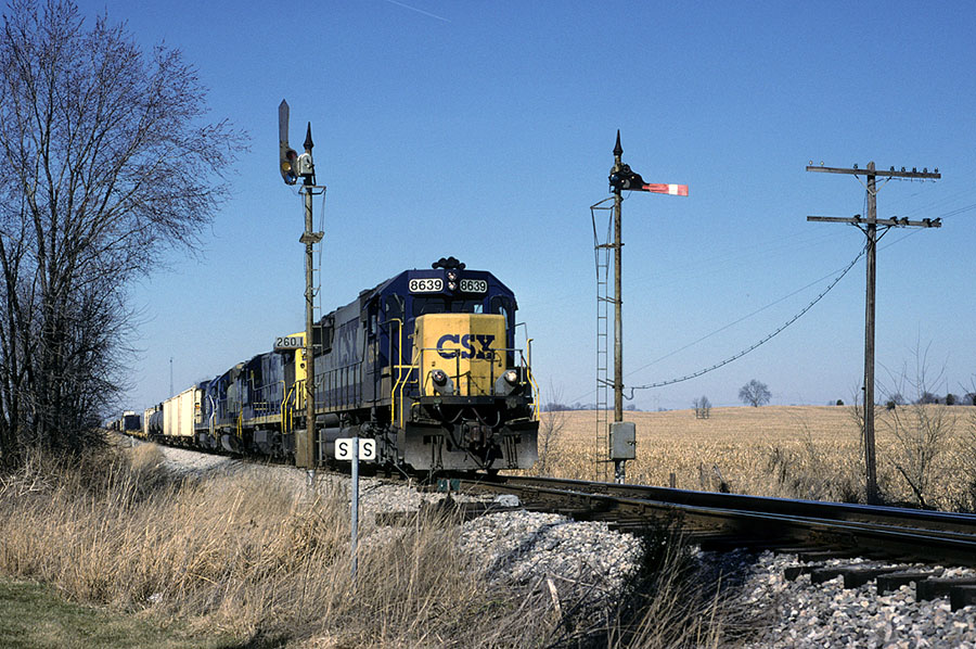CSX train Q565 splits the blades at Orleans on the old Monon.