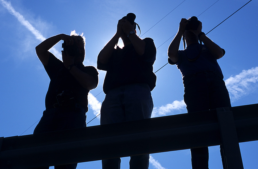 The crew sizes up yet another location on the Rathole--from left, Tom McNair, Will Rasmussen, and Brian Carlson. They got the shot.