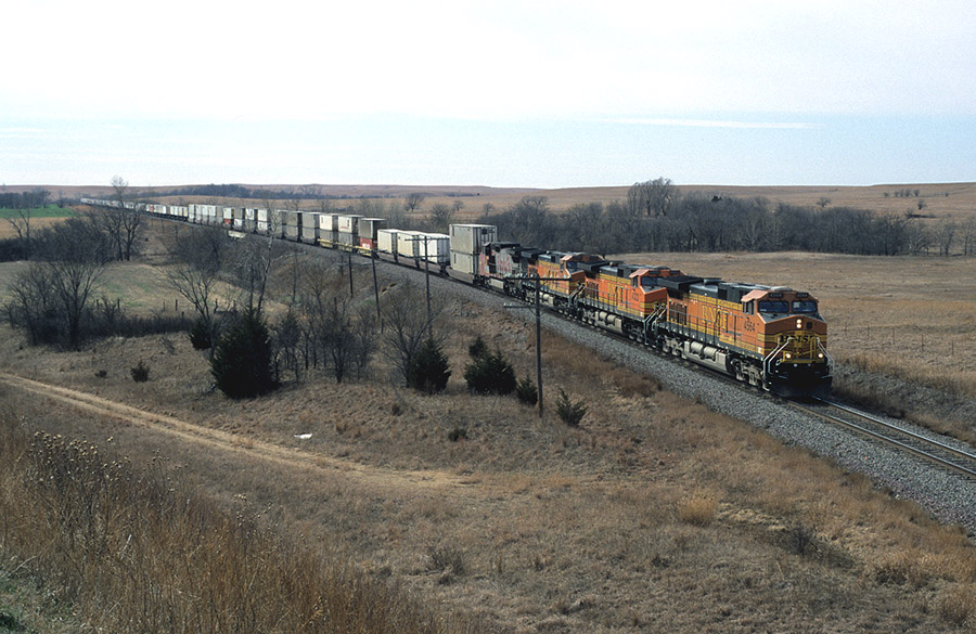 An eastbound nears Matfield Green in the heart of the Flint Hills at the first light of the day.