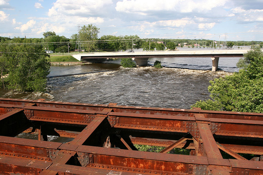 | This is the 2nd crossing of the Rock River by the UP in Janesville, a former CNW structure that was double track. You are looking east at the 2nd US 51 bridge. | |||||
