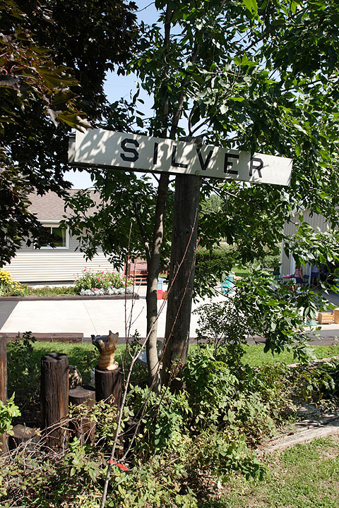 | Silver was a Milwaukee Road timetable location at the west end of Portage, WI. Today, CP calls it Portage West. This sign was preserved by the retired Milwaukee Road maintainer who lives here. | |||||