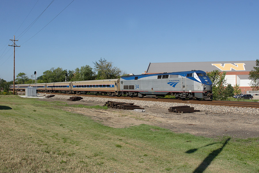 Amtrak Wolverine service passes the WMU campus as it slows for a stop at Kalamazoo.