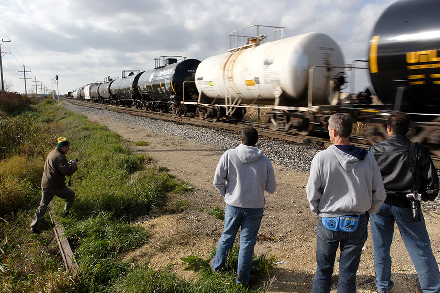Railfans (L-R) Mark Nelson, Bill Sipa, Brian Walker, and Mark Lluanza witness the passing of another ICE manifest.