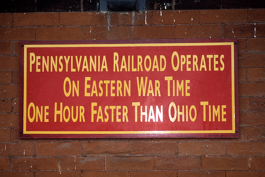 The old PRR sign reminds passengers of the time zone. Dennison was a major stop during WWII for troop trains, and a large USO canteen was set up there. | |||||
