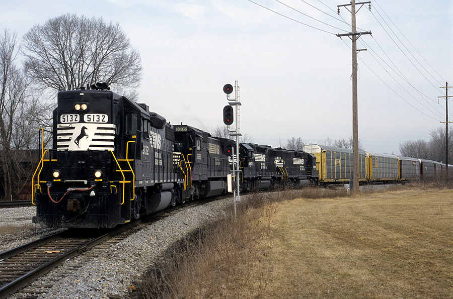 NS interchange track at Milan is busy with trains getting off the old Wabash and onto the Ann Arbor for the run into Toledo.