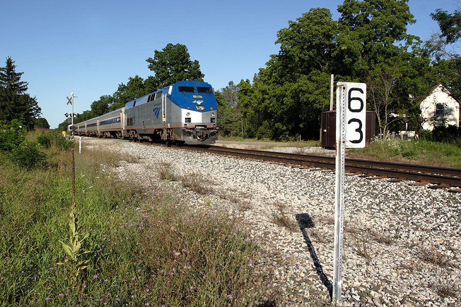 Amtrak train #352 is moving away from the camera, headed to Detroit.
