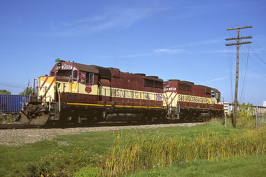 Technically a GP35m, the power for WC train LO31 waits to make a move at Neenah.