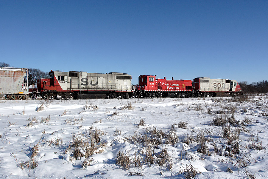The CP local from Portage to Madsion sports an interesting power consist as it nears Morrisonville.