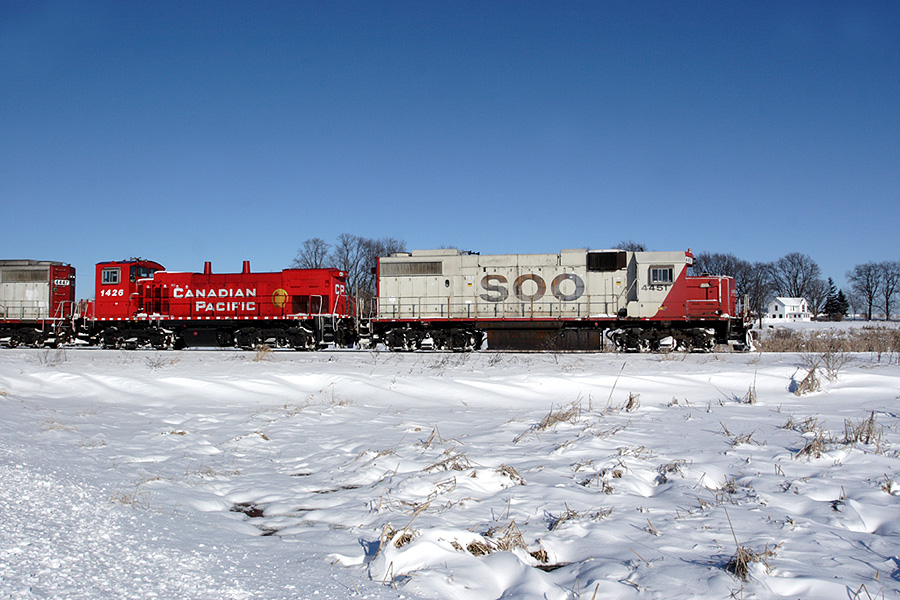 SOO 4451 has the G64 local in tow headed for Madison.