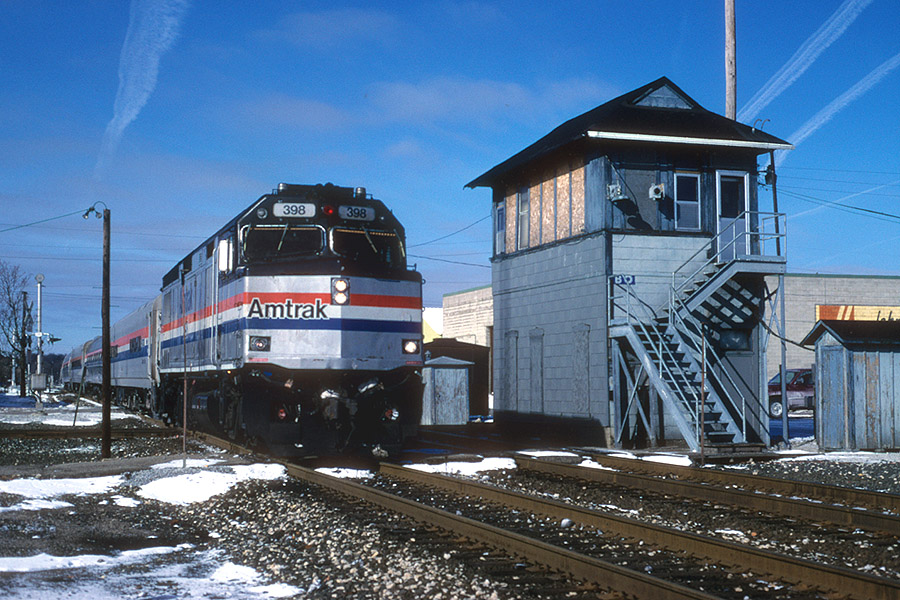 Amtrak train #350 heads past BO Tower on the way to Detroit.
