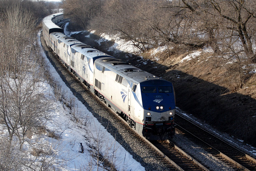 Amtrak 8, the Empire Builder, is running late today about a mile out of Reeseville.