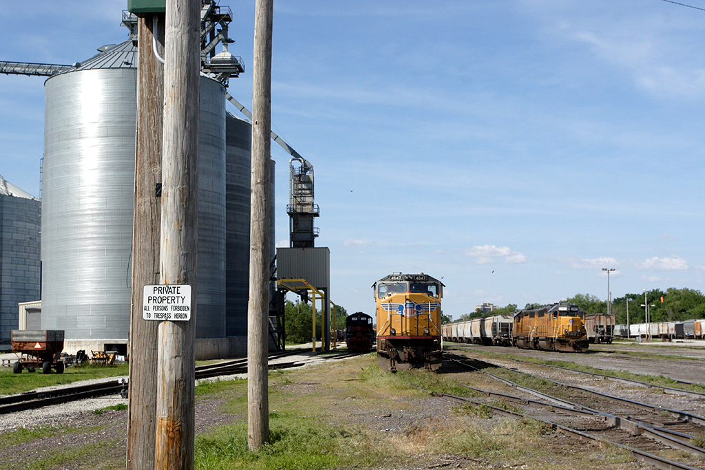 UP power waits for crews at the south end of Bloomington yard.