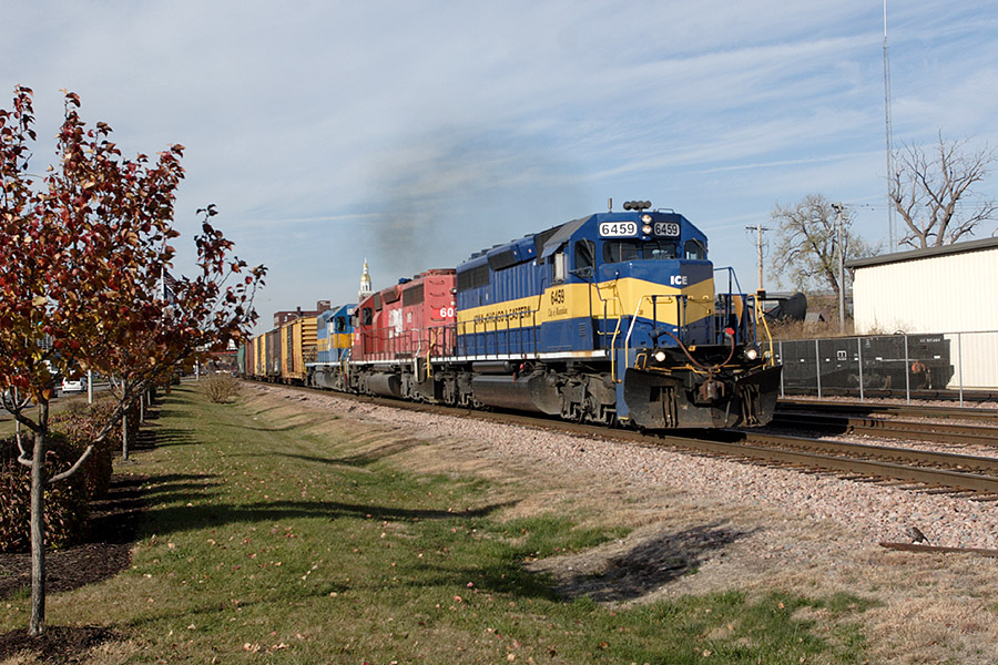 A southbound #270 departs Dubuque, running through downtown past the CN yard office.