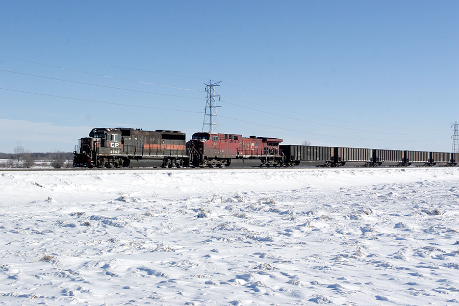 CP train #857 has an unusual bandit leading, ex-Guilford/B&M engine leads a train west across Wisconsin.