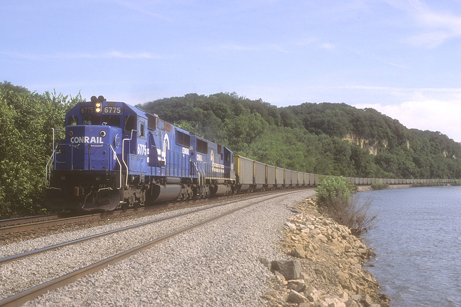 Not a common sight to see Conrail power along the Mississippi River on the BN, but that is what we have here pulling hoppers. | |||||