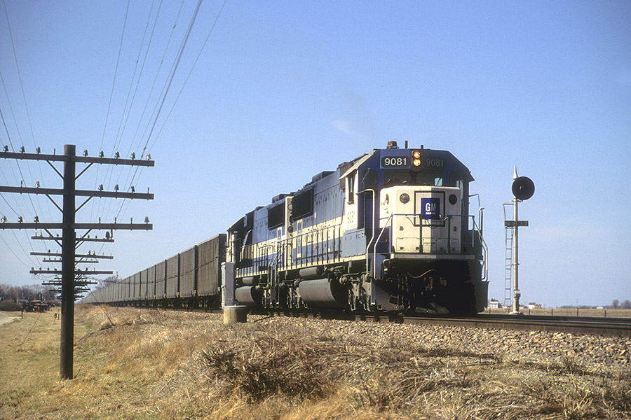 Empty hoppers move west.