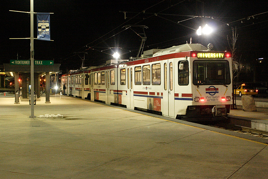 Action at the platforms while Amtrak is serviced include these UTA TRAX cars.