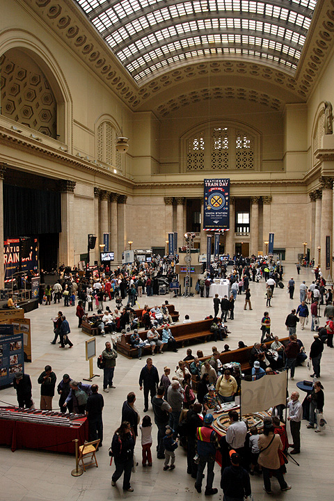 National Train Day in Chicago Union Station with a view of the activities on the main Concourse.