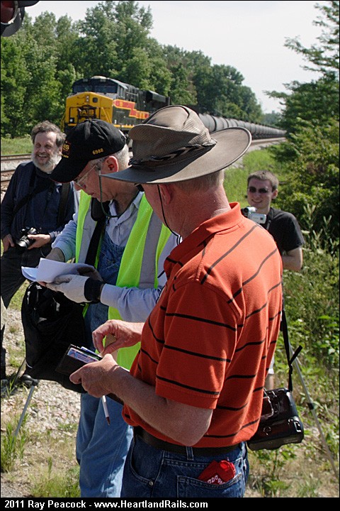 IAIS President Henry Posner shares loading information with Trains Editor Jim Wrinn. The record for tonnage hauled by steam in the 21st century, held by the IAIS, was broken on this run enroute to Rock Island. | |||||