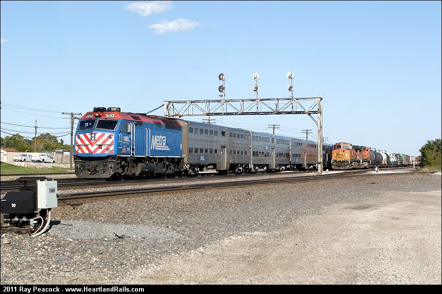 An outbound Metra train nears the end of it's commute from Chicago Union Station as it approaches Hill Yard.