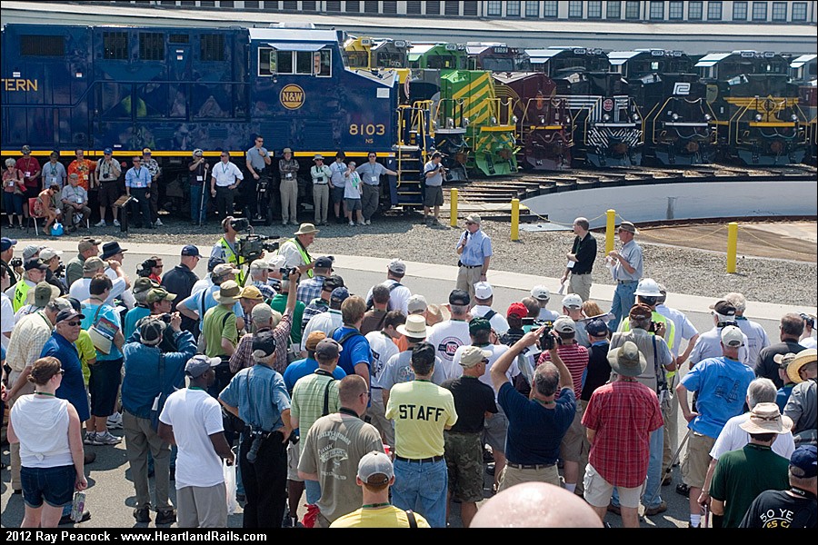 NS CEO Wick Moorman speaks before the assembled locomotives and crowd.
