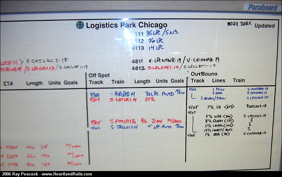 BNSF Logistics Park wetboard shows this day's expected arrivals.