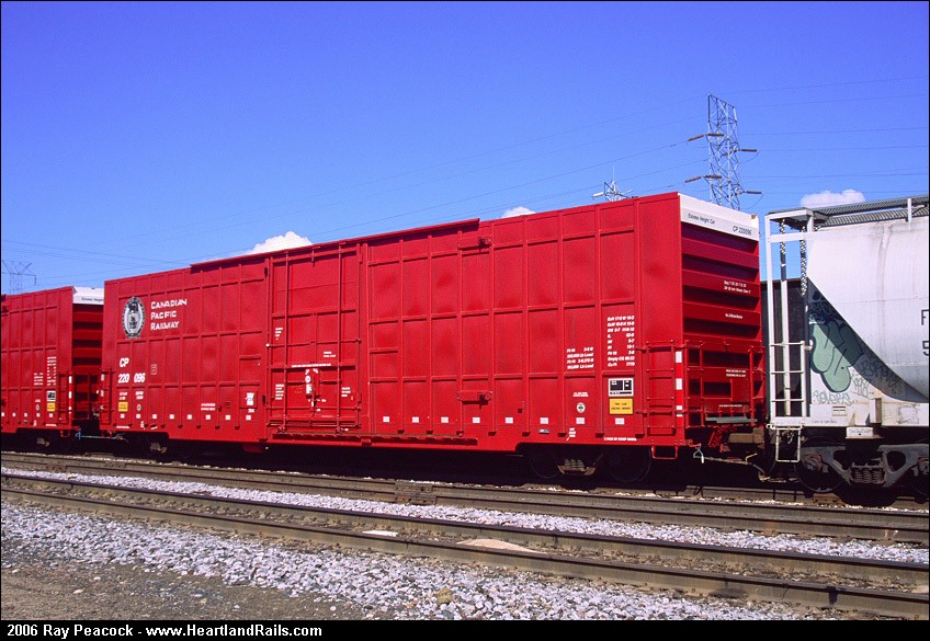 CP boxcars in a fresh coat of paint. These are used to deliver newsprint to Milwaukee.